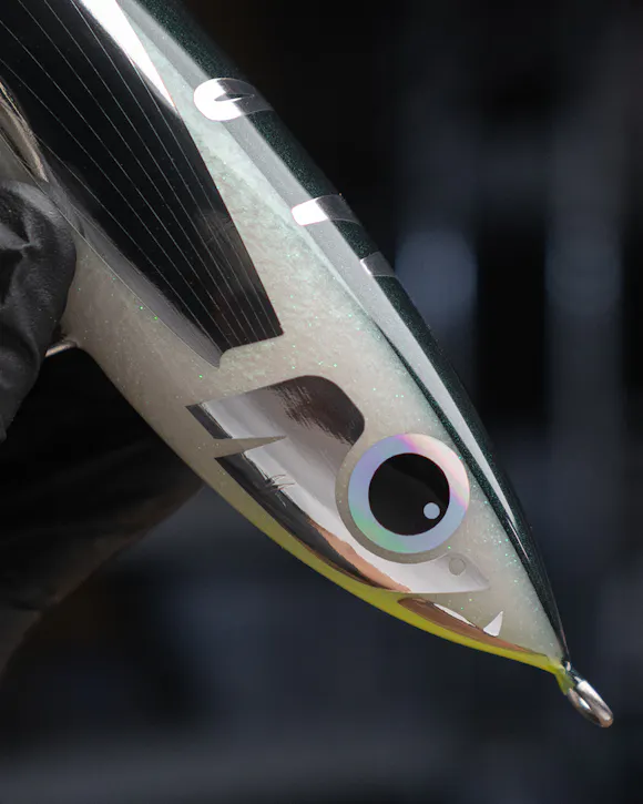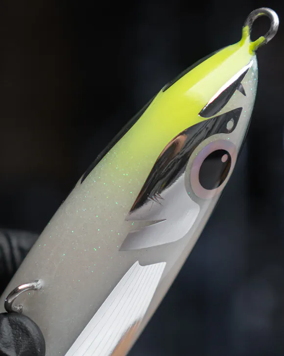 The Vader is more traditional in design featuring a single, carefully balanced rear weight and a buoyant timber body assembled in two halves. Experienced anglers will appreciate the responsiveness and range of different finesse actions this floating stickbait can perform; from straight retrieve, reverse jig and stabbing jerk, to long soft sweeps, the Vader can produce some seriously alluring S action, surface splashing, and dense bubble trails as it dives.